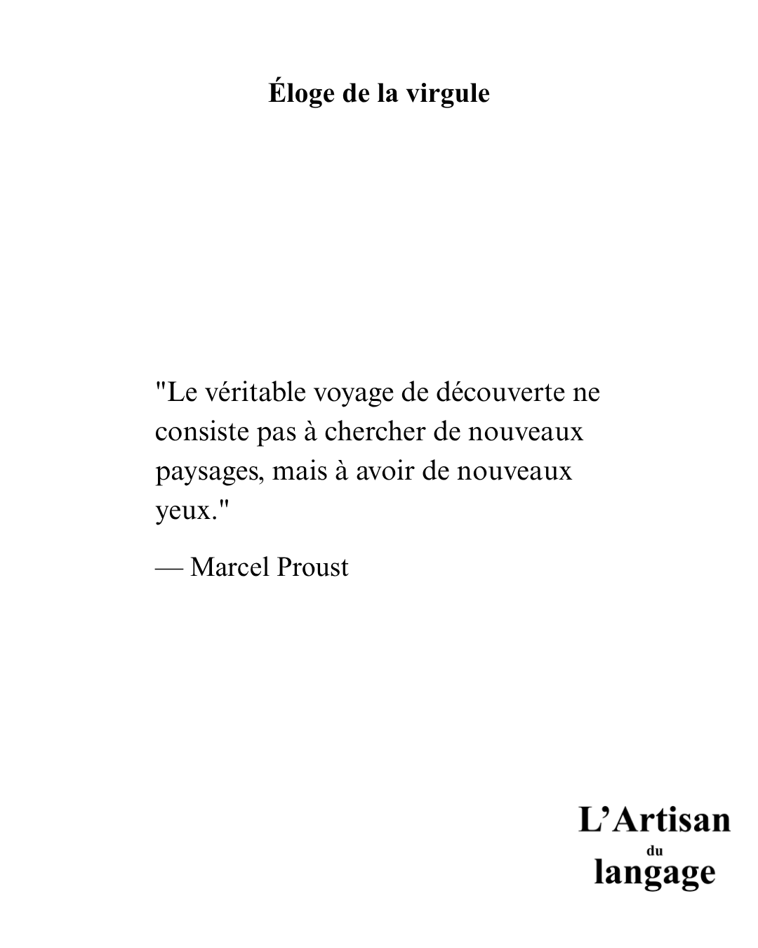 Pour ce nouveau numéro de l'Éloge de la Virgule, Marcel Proust nous rappelle que la plume n'est pas un outil de voyage, mais un instrument d'optique.