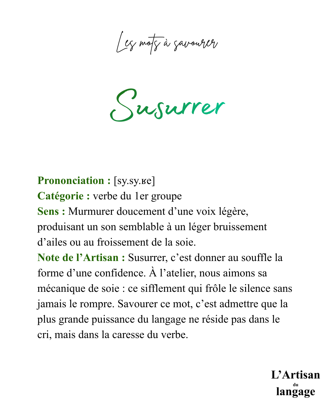 Il est des mots qui ne se contentent pas de nommer les choses, mais qui les imitent. Susurrer est de ceux-là.