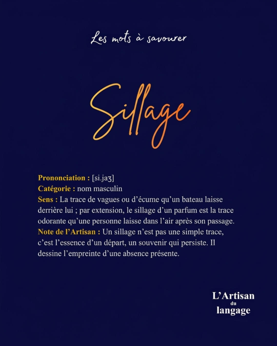 Pour l’artisan, ce mot est une ciselure de l'éphémère, un rappel ineffable que ce qui part laisse souvent derrière soi la plus belle des empreintes.